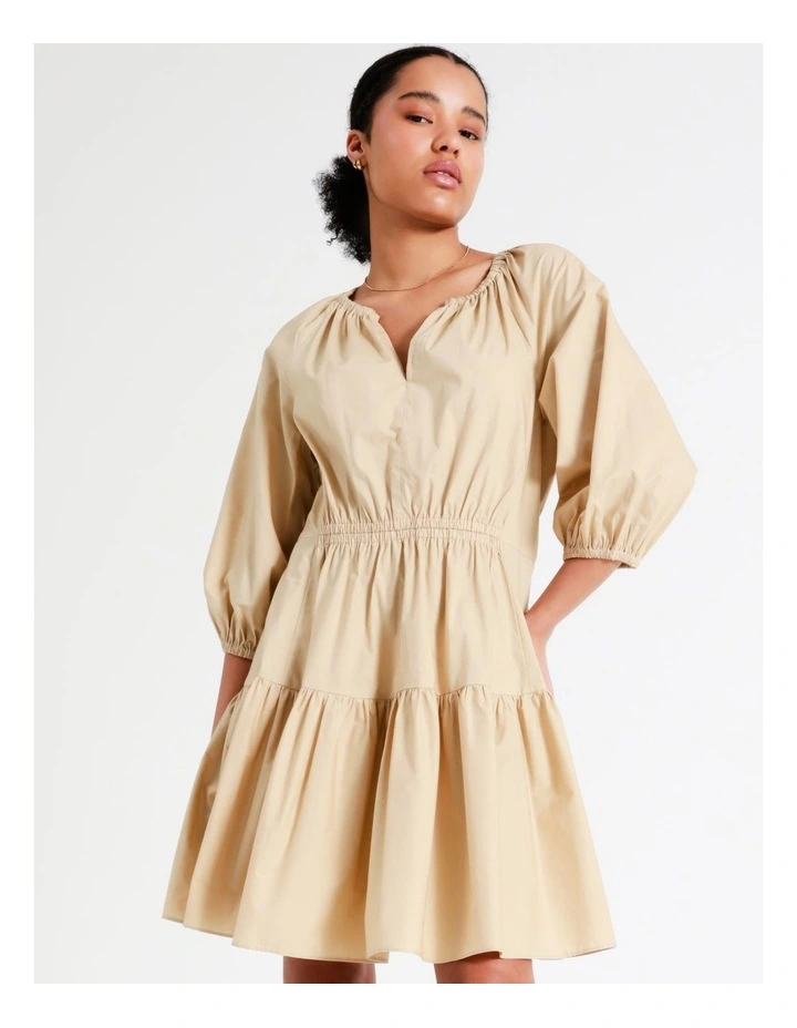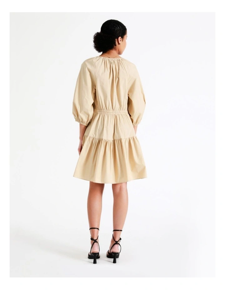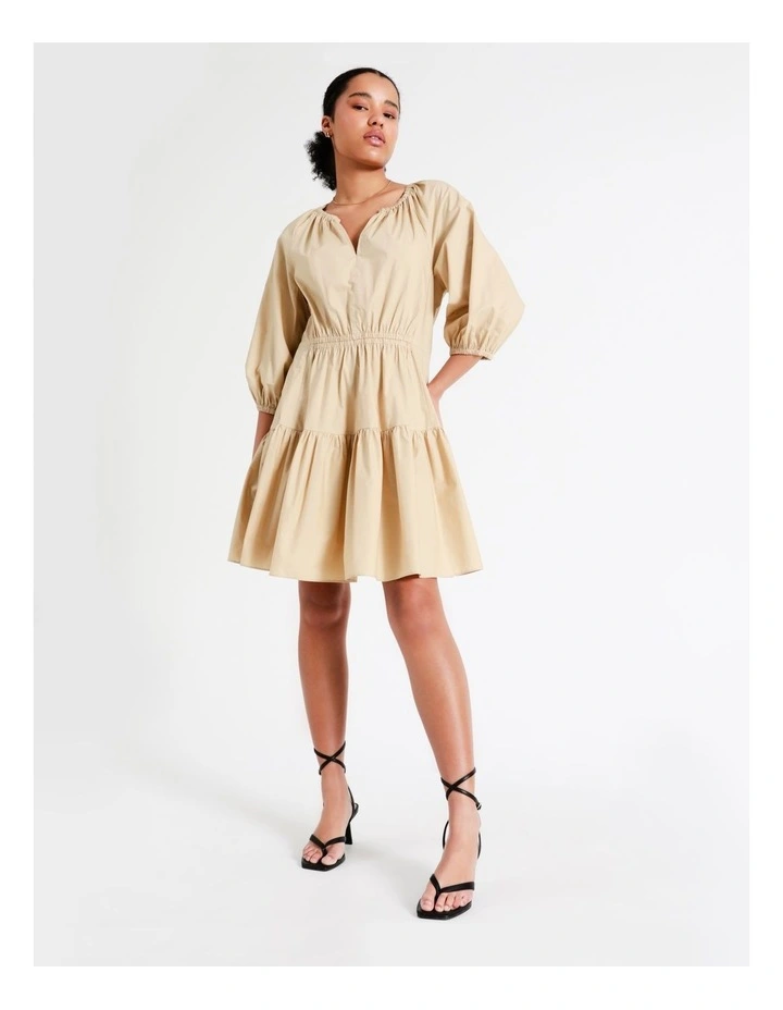 Basque Petites Organic Cotton Tiered Mini Dress In Beige