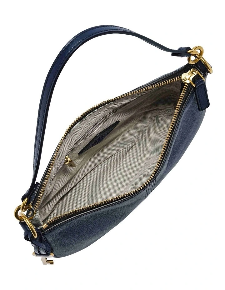 This eco leather baguette features 1 zipper pocket, 1 back slide pocket with magnetic snap and an adjustable & detachable crossbody strap and 1 short shoulder strap.