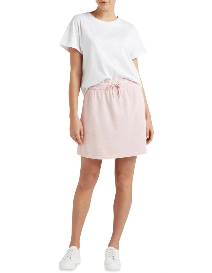 The Organic Sweat Skirt offers versatile styling options. Made from soft and breathable organic cotton, it features a tie detail, elasticated waistband and a relaxed fit. Style with a half-zip knit and boots. Our model wears size AU 8/XS. She usually wears a standard AU 8/Extra Small, is 176cm tall, and has a 84cm bust, 89cm hips and 61cm waist.