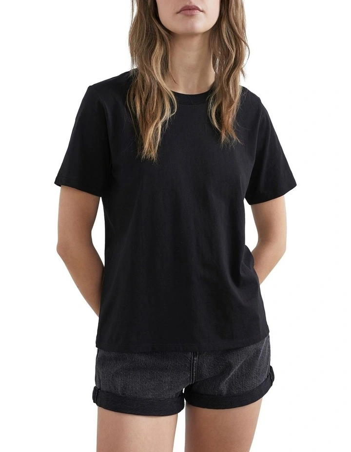 Meet The Essential Crew Neck Tee. This staple tee comes in 100% BCI Cotton and has a crew neckline and a relaxed fit. Pair with our Cotton Button Through Cardigan and Girlfriend Fit Jean. Our model wears a size AU 8/XS. She usually wears a standard AU 8/XS, is 179cm tall, and has a 84cm bust, 94cm hips and 61cm waist.