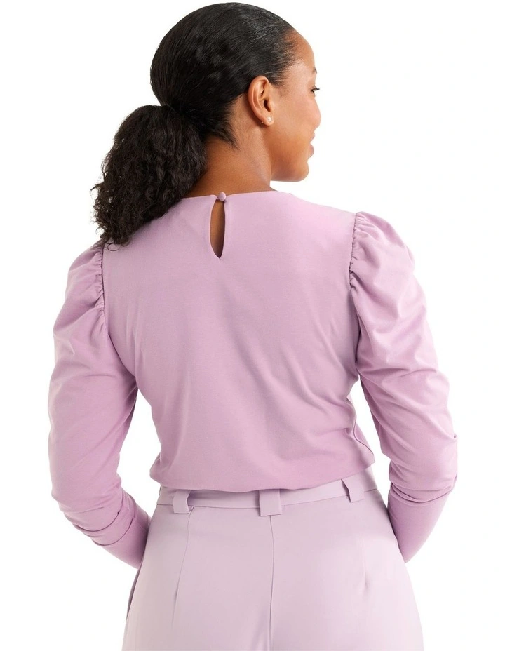 Introducing the Grace Top, a versatile and stylish addition to your wardrobe. The round neckline and slim fit create a flattering silhouette, while the stretch throughout ensures a comfortable fit. The full length sleeves and puff shoulders add a touch of elegance, and the key-hole closure at the back neck adds a subtle, yet unique detail. Perfect for both casual and formal occasions, the Grace Top is sure to become a staple in your wardrobe.