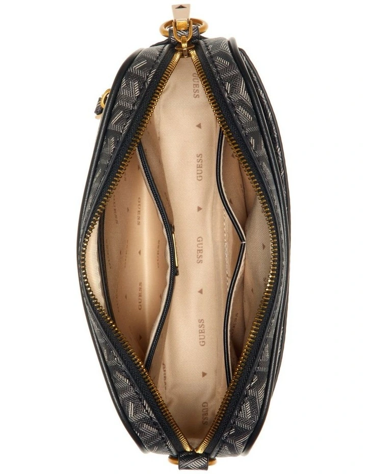 Hip, slick, yet effortlessly elegant all at once, the Vikky Camera Bag from GUESS is a shoulder-strapping staple for day and nights on-the-go. A mesmerising logo pattern colours the exterior while antique bronze hardware gleams at the buckles and zipper. Streetwear gone sleekwear? Sign me up.