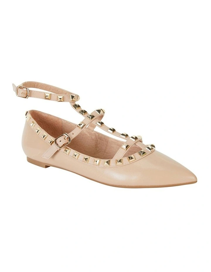 Featuring an adjustable ankle strap, a sleek pointed toe design and studded detailing, this ballet flat will take you from desk to dinner date with ease!
