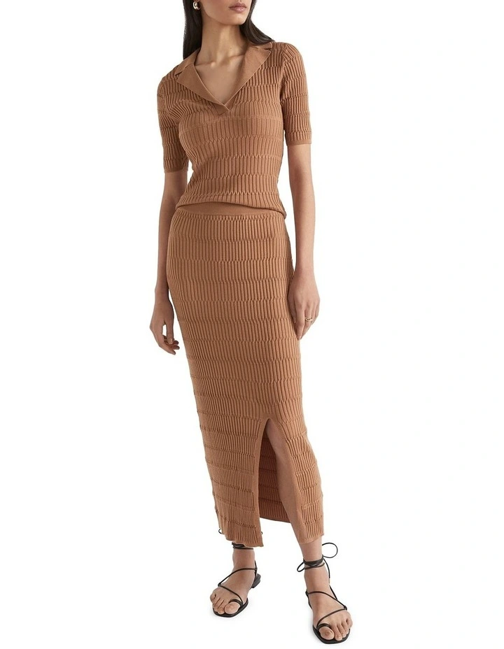 Give your summer wardrobe some texture with this jacquard knit skirt. With an elasticated waistband, it is easy to slip into, while a side split adds that little something extra. Pair with the matching top for a full look.