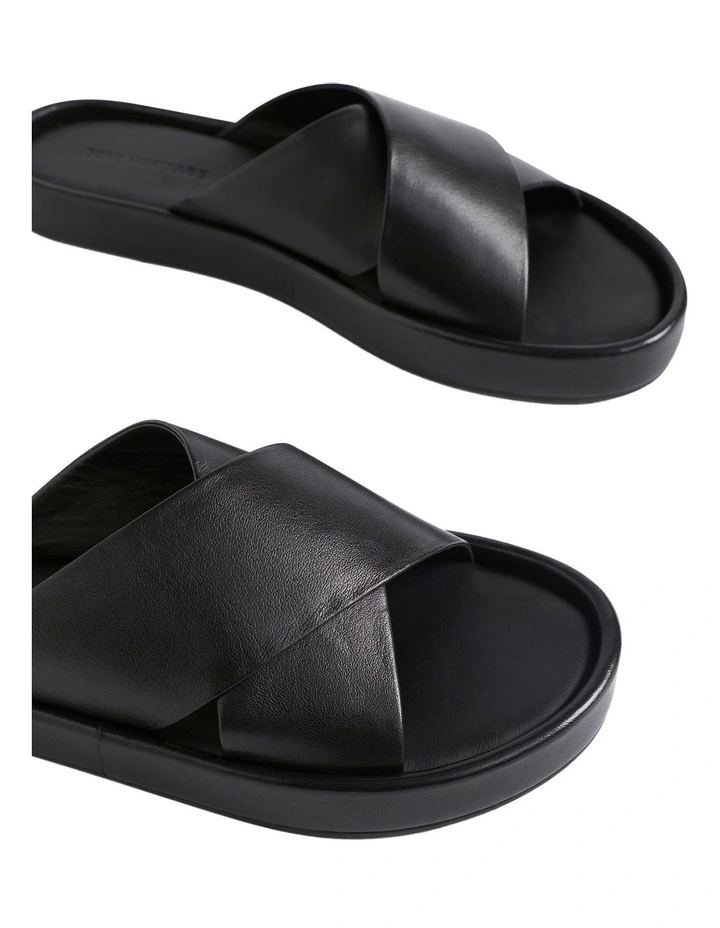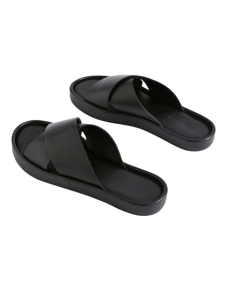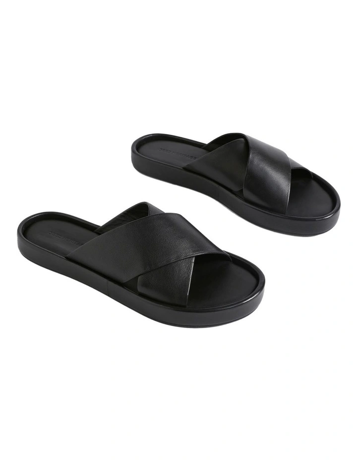These slides feature a beautiful sheep leather upper in a crossover shape. With a comfortable insole, the slides sit on a low platform sole. Ideal for day-to-night outfitting this summer.