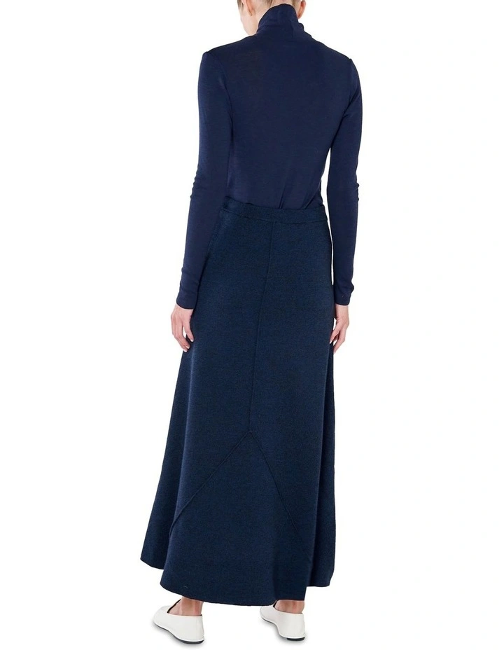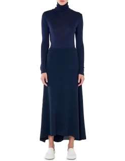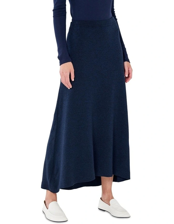 Made from 100% Merino Wool navy coloured yarn, the Angled Hem Skirt is a great winter piece that pairs back easily with any of our blouses or merino tops. Features a rib waistband for comfort and angled hem at front. Pair back with boots or sneakers for an easy everyday look.