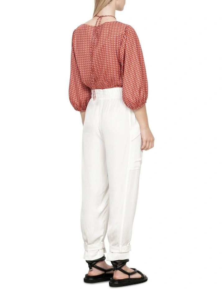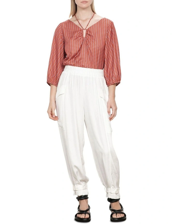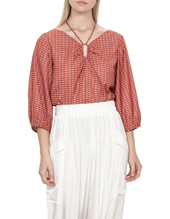 This top is a part of our Forward collection. Draped from our Prismatic print recycled fabric, this tie top strikes the perfect balance between structure and fluidity. The elegant blouson sleeves, relaxed fit and airy drape offers a contemporary silhouette. Tuck yours into relaxed linen trousers and finish with strappy sandals.