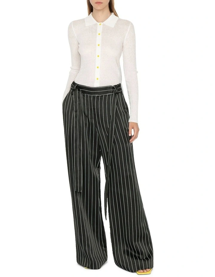 Elevate your wardrobe with this crepe knit shirt. Designed with a polo collar and contrast buttons. Pair back with slouchy trousers for a modern edge.