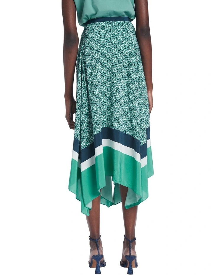 Lightweight by design, this skirt flows and floats within soft viscose, descending from a neat waist through a full A-line silhouette to midi length, where a handkerchief hem enhances its sense of movement. Featuring a contrast waistband, the skirt flaunts a multi-tonal print with bold block colour hem, finished with an invisible zip closure at the side seam.