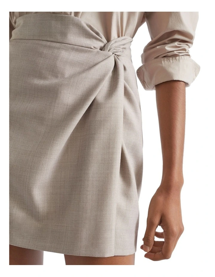 This wool-blend mini skirt is a classic with a twist. Sitting at the natural waist, it has a knotted detail at the front and a crossdye look. Modern and wearable.